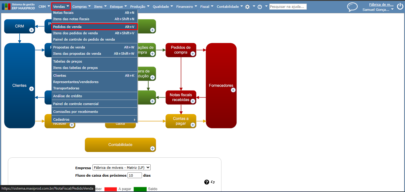 1) Acesse o menu superior “Vendas > Pedidos de venda”.